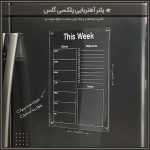 تخته برنامه ریزی هفتگی مغناطیسی شفاف این امکان را به شما می دهد تا با داشتن یک برنامه ی منظم هفتگی کارهای خود را سازمان دهی کنید.همچنین با داشتن بخش جزییات کارهای روزانه به شما در طبقه بندی، رسیدگی و انجام کارهای تان کمک می کند. امکان ثبت رویداد های هفته ،ثبت قرار ملاقات و دارا بودن بخش یادداشت های متفرقه از مزیت های این محصول است . پلکسی گلس اجرا شده در این محصول به ضخامت دو میلی متر است و در آن چهار عدد آهن ربای نئودیمیوم درجه یک بکار رفته است . آهن ربای این محصول با قدرت بالا نسبت به وزن محصول احتمال سرخوردگی را به صفر می رساند. طرح چاپ شده در دو رنگ سفید و مشکی در پشت پلکسی گلس اجرا شده است. با یک ماژیک وایت برد قابلیت نوشتن و پاک کردن مکرر روی این تخته وجود دارد.